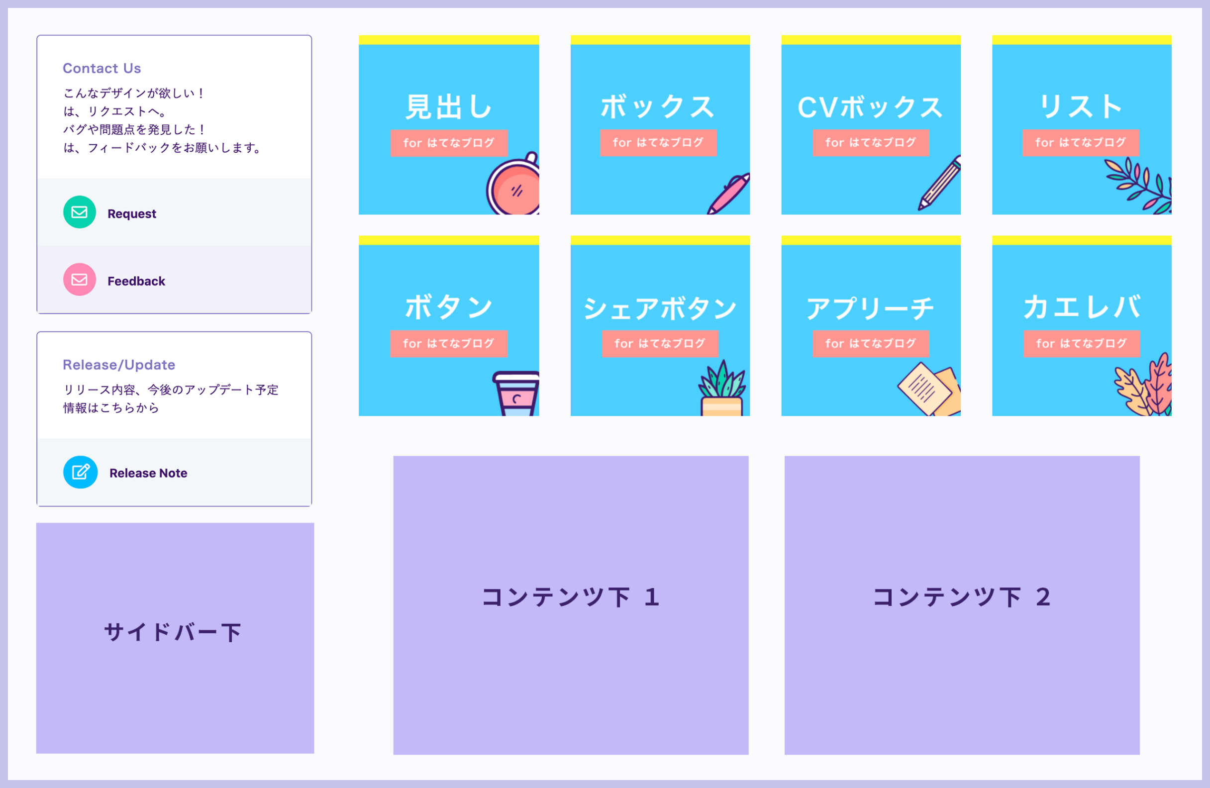コンテンツページのサイドバー下、コンテンツ下に広告枠を用意しています。