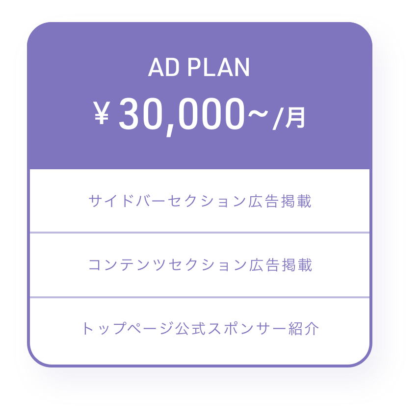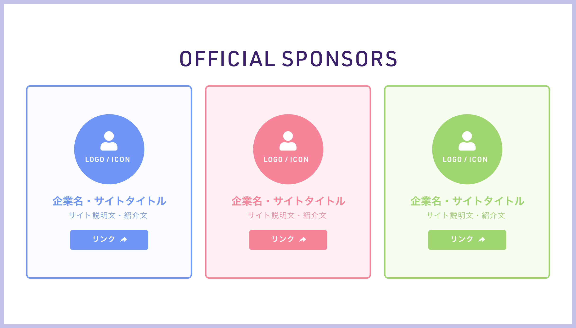 トップページに公式スポンサー様として、アイコン・ロゴ・URL等を掲載いたします。